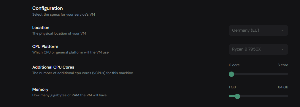 - Performance tier (AMD Ryzen 9 9950X): €3.00/GB per month